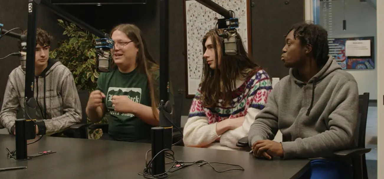 DAES, pronounced 'daze', is comprised of students from Denver School of the Arts and North High School. The members are Elias Earl (vibes), Scarlett Before Horses (keys), Aesop Pelta-Tiller (bass), Elijah Holmes (drums/keys/bass). DAES drummer Declan Scully was out of town for the chat, but will be at the show Sunday.