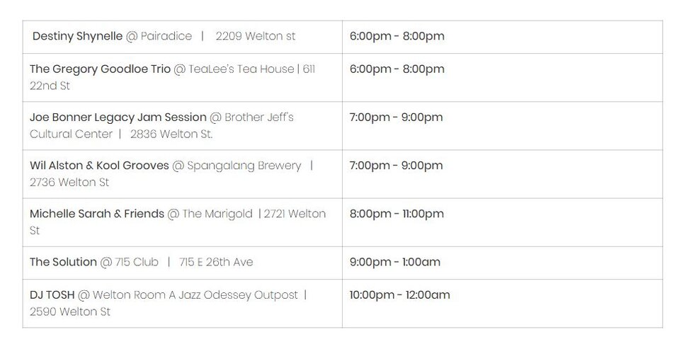 Experience the soul of Five Points at First Friday Five Points Jazz Hop! Every First Friday of the month, enjoy a night of live jazz featuring local musicians and artists performing at venues along Welton Street in Denver’s historic jazz district.