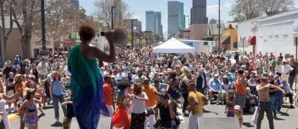 Children’s activities include a moon-bounce castle, giant connect 4, face painting, sidewalk chalk art, stilt man and more on 27th between Welton and California.