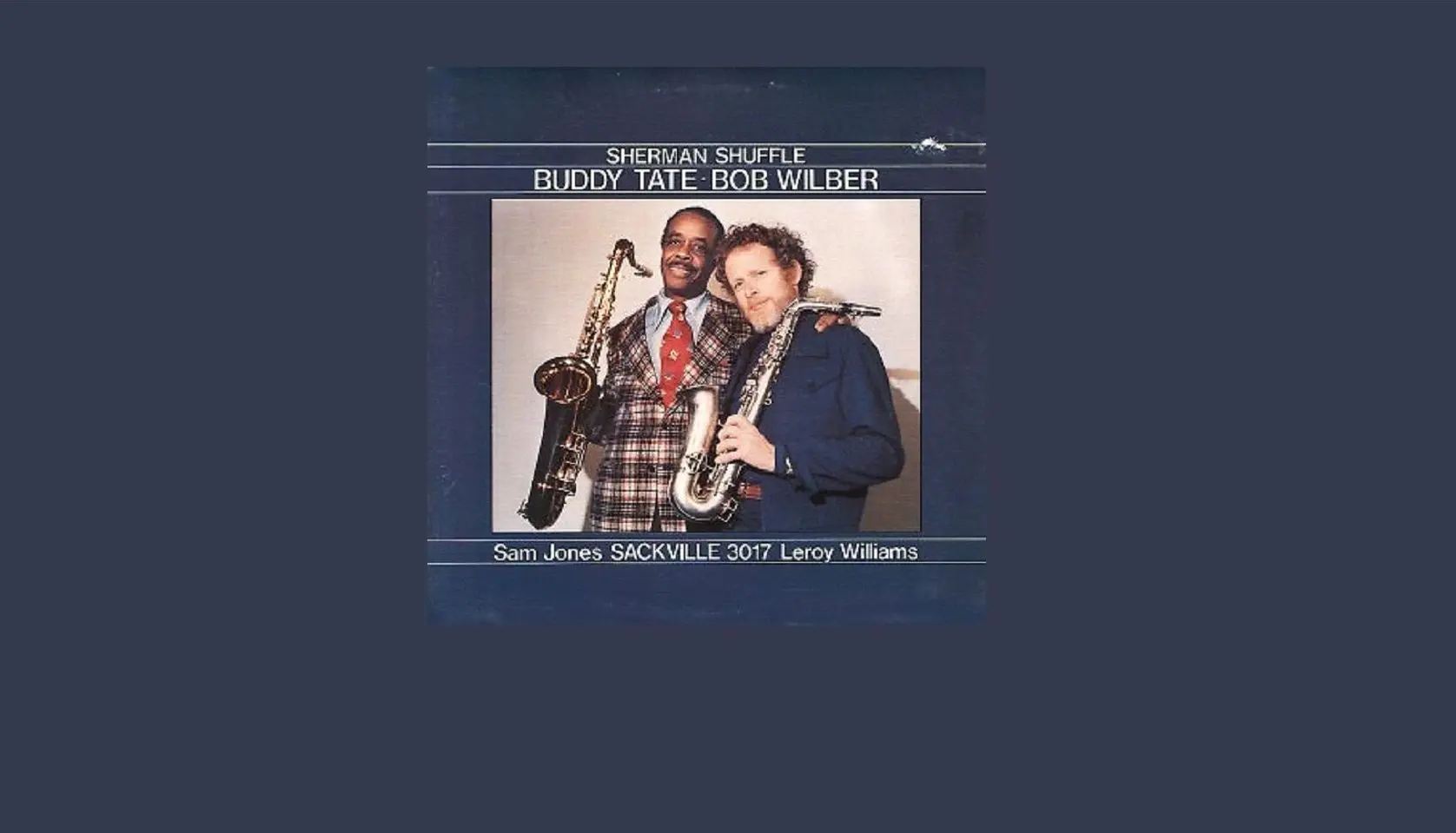 This week’s Vinyl Vault features reedmen duo Buddy Tate (1913-2001) and Bob Wilber (1928-2019) and their album, “Sherman Shuffle,” released in 1978 on Canadian label, Sackville Records. On the album, Tate played tenor and baritone saxes, while Wilber played soprano and alto saxes; they both also played clarinet. They were joined by Sam Jones on bass and Leroy Williams on drums.