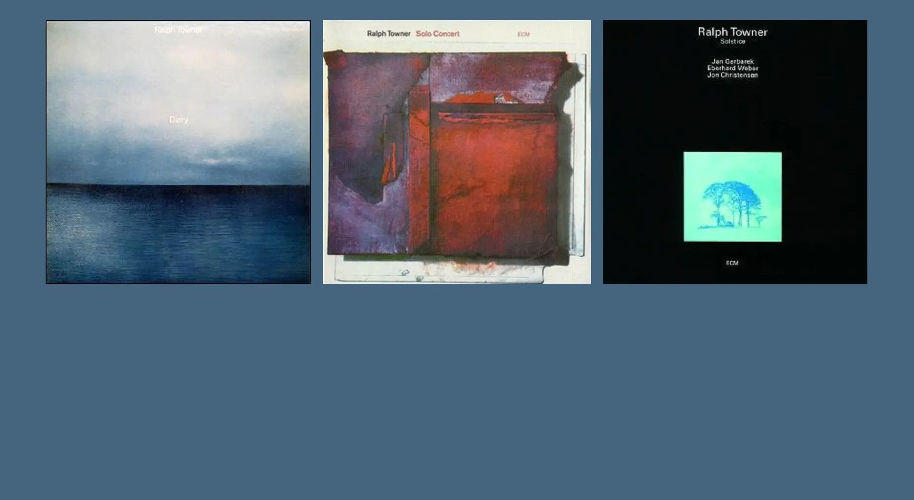 Towner first came to prominence for his work with the Paul Winter Consort in the late 1960s. Shortly after leaving that band, he and other members of the Consort formed the group Oregon. Towner also recorded many albums under his own name or with one or two or three other musicians.
